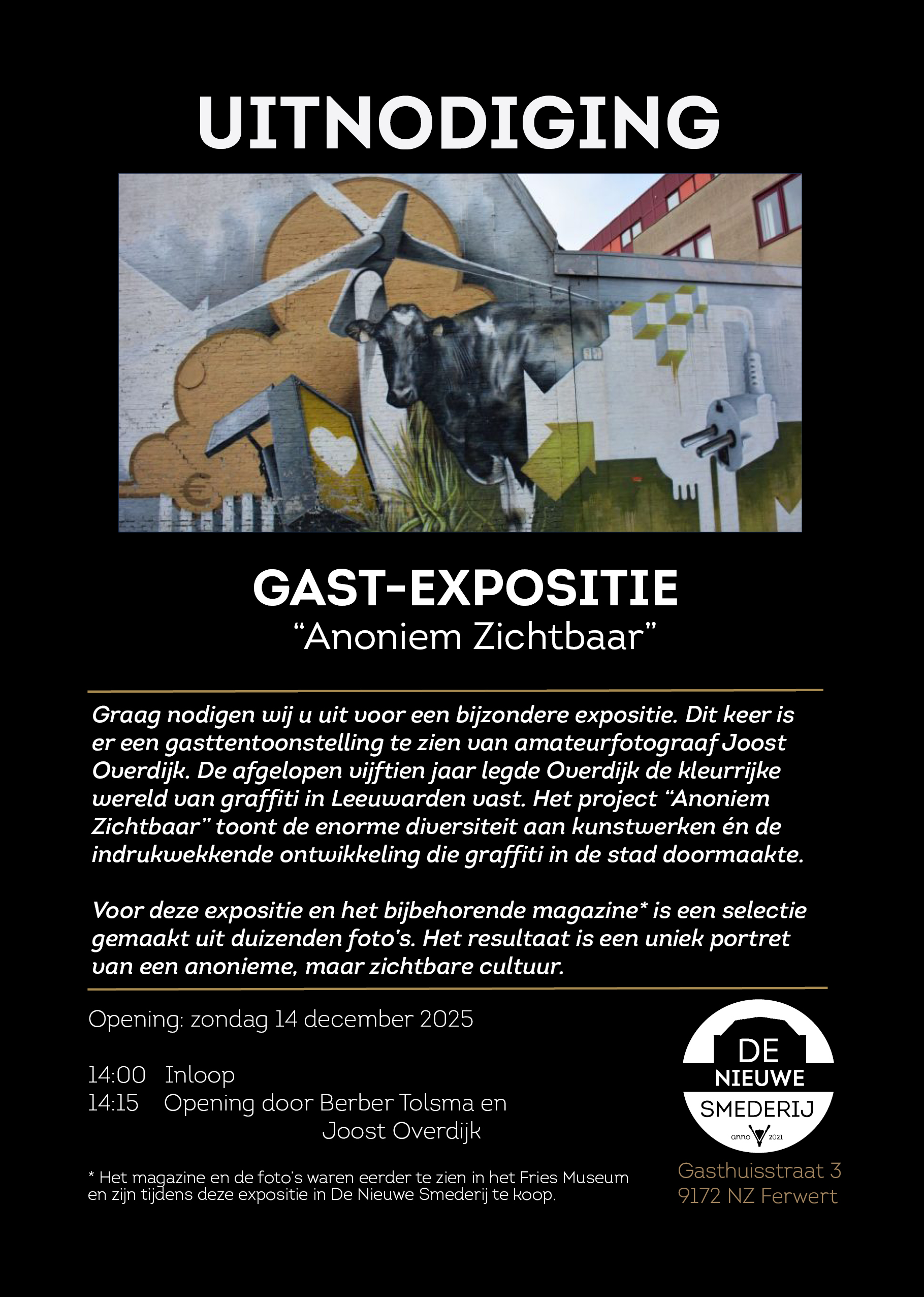 De foto’s maakte hij vanuit een persoonlijke interesse. Inmiddels bestaat zijn collectie uit duizenden foto’s. Voor het magazine en expositie werd daarvan een selectie gemaakt, die een prachtig beeld geeft van de grote variëteit aan graffiti-werken en de indrukwekkende ontwikkeling die graffiti in Leeuwarden doormaakte.